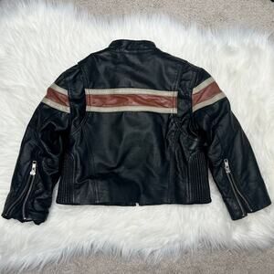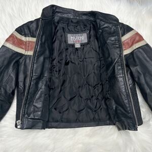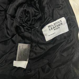 WILSONS LEATHER Black Leather Biker Jacket Kids Size XS Moto Striped Motorcycle