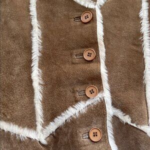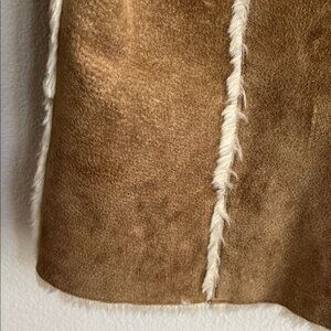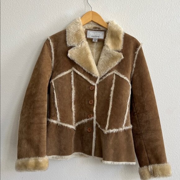 WILSONS LEATHER Maxima Genuine Suede Faux Fur Trim Fitted Jacket Tan Large