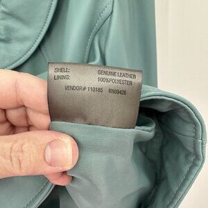 WILSONS LEATHER jacket blazer cropped 100% leather peter pan collar teal XXL