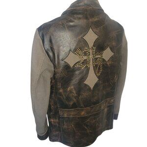 WILSON'S M JULIAN Vintage rock- inspired Distressed Leather Jacket Skull Studs