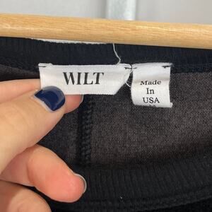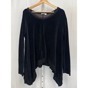WILT Extreme Pointed Side Seams Raw Band Open Neck Velour Sweatshirt Black M