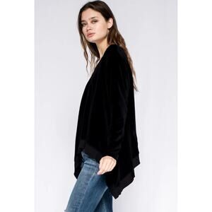 Extreme Pointed Side Seams Raw Band Open Neck Velour Sweatshirt in black. Style W996190. Made in Italy.