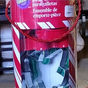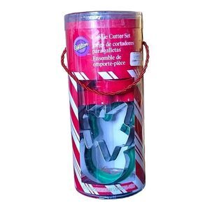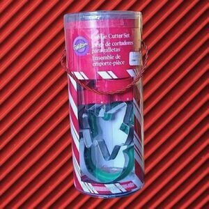 WILTON Christmas COOKIE CUTTERS Set of 10 . RED METAL in Tube