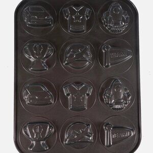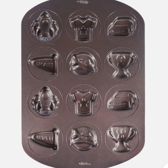 Create playful, themed treats with this Wilton Ultra Bake 3--cookie pan featuring 12 fun boy-themed cavities—think rockets, jerseys, cars, trophies, and airplanes.