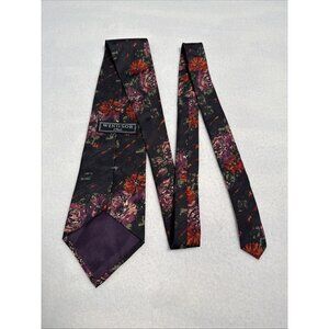 WINDSOR Black, Red, Purple Roses Flowers 100% Italian Slik Neck Tie 56" X 4"
