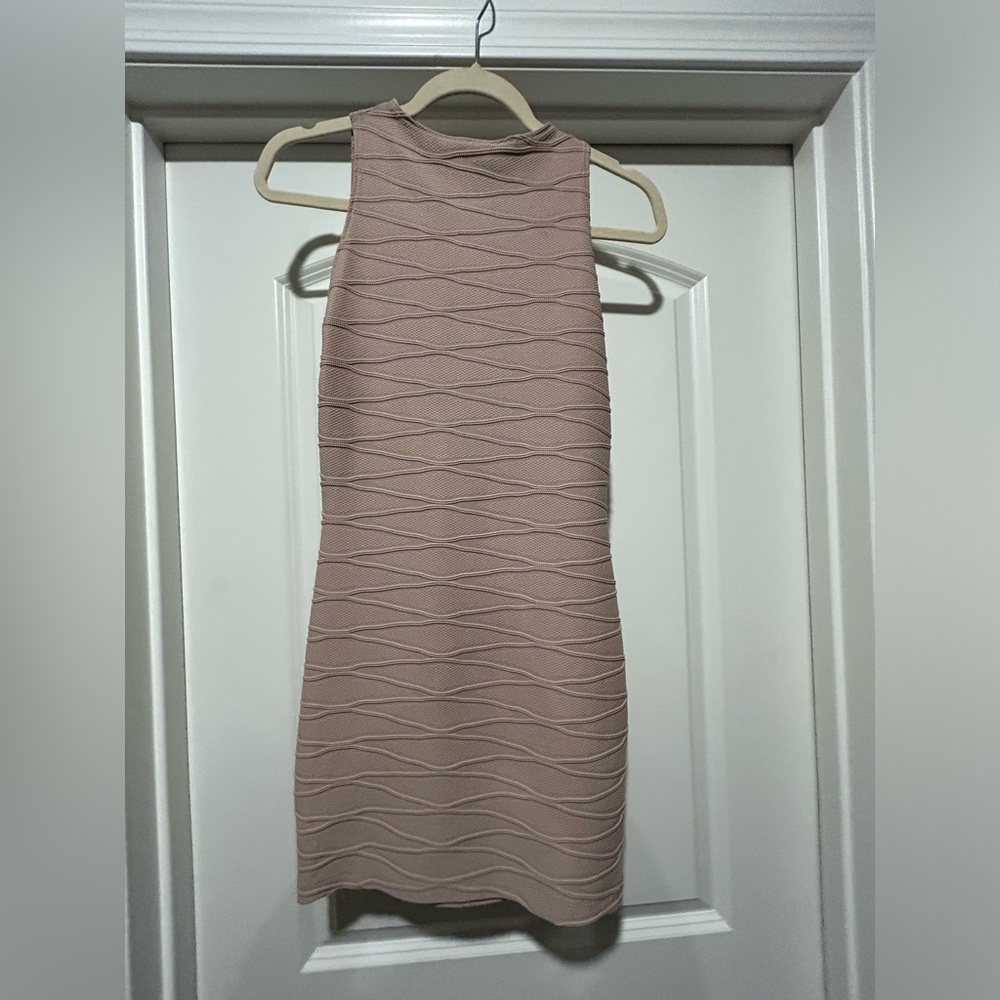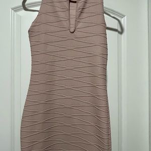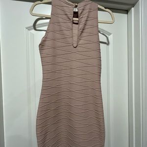 Windsor- body-con Dress. High neck, tan/taupe color.