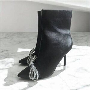 WINDSOR Flora Black Rhinestone Jeweled Bow Heels Boots Size 7