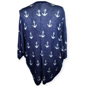WINDSOR NAVY W/WHITE ANCHOR PRINT DOLMAN SLEEVE CARDIGAN SZ. S/M EUC. GORGEOUS SWEATER IN EXCELLENT USED CONDITION LIKE NEW.