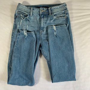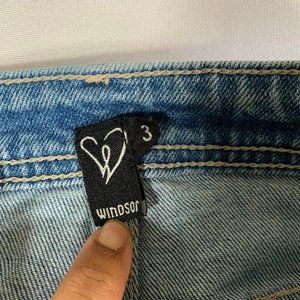 WINDSOR WOMENS SIZE 3 DENIM DISTRESSED BLUE SKINNY JEANS KNEE CASUAL TAPERED