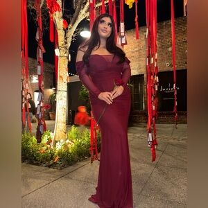 WINDSOR burgundy gown mesh long sleeve bralette corset maxi dress Large