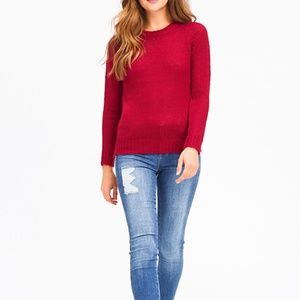WINE BURGUNDY RED KNIT ROUND NECK LONG SLEEVE SWEA