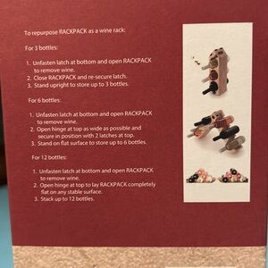 THIS IS SO COOL! YOU CAN TURN A GIFT BOX FOR WINE INTO A THREE, SIX OR 12 BOTTLE WINE RACK. EXAMPLES ARE RIGHT ON LABEL. BRAND NEW