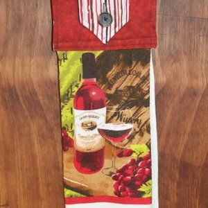 WINE RED & BLACK TOWEL RED STRIPED HANDMADE HANGING KITCHEN BUTTON CLOSURE
