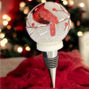 Elevate your gatherings with this enchanting cardinal wine stopper! Featuring a charming red cardinal perched on a tree branch against a frosted globe, the stopper adds a touch of festive elegance to your wine bottles, especially during the holiday season. The mesmerizing color-changing LED lights inside create a warm, inviting glow, perfect for setting the mood during celebrations. Battery-operated for convenience, this delightful wine stopper is not only practical but also makes an ideal hostess gift.