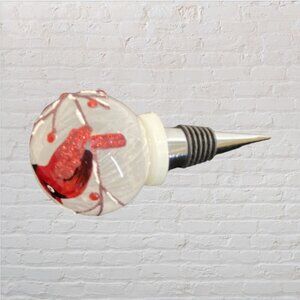 WINE STOPPER -- LED Color Changing, Battery Op, Red Cardinal, Frosted, Christmas