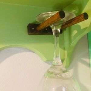 Adorable repurposed vintage solid oak gathering station/mini bar in great condition. Measures 5 1/2” deep, 7” tall and 23 1/2” wide.