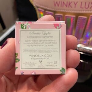 Winky Lux Gift set includes 2 ph lip balms in Rainbow Confetti balm & Glimmer Rose. Also includes Holographic highlighter in Charm and Chai eyeshadow single from the latte kitten collection.
