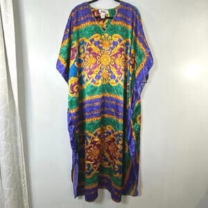 WINLAR Women Maci Dress Tunic Multicolor Satin Paisley Beach OS Boho Summer New