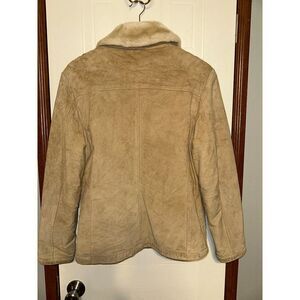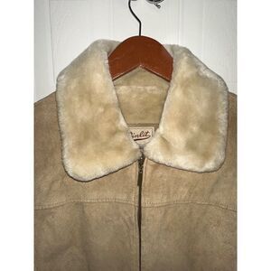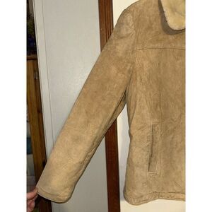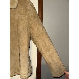 WINLIT Vintage Tan Brown Faux Fur Suede Leather Western Winter Coat Size Medium