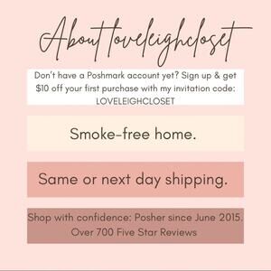 ▪️About loveleighcloset: Smoke-free home. Same or next day shipping. Shop with confidence: Posher since June 2015. Over 500 Five Star Reviews
