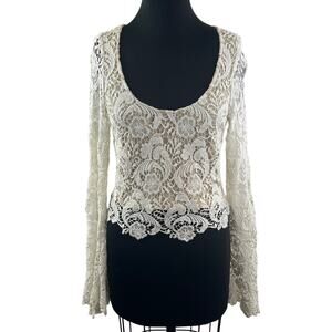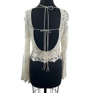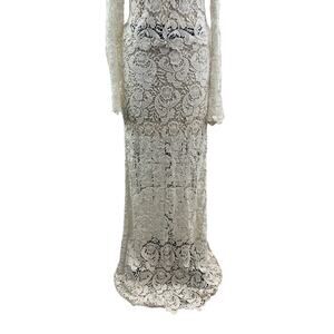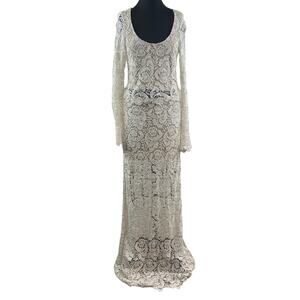 Winston White Lace Overlay Long Sleeve Top & Skirt Scoop Neck Open Back Size M