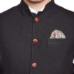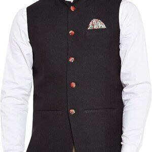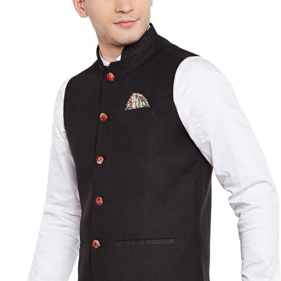 WINTAGE Men's Linen Blend Bandhgala Party Nehru Jacket Waistcoat