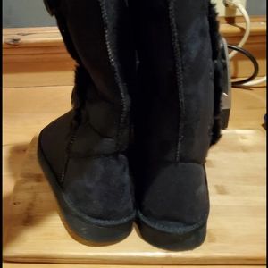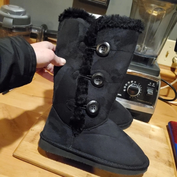 Black Suede like Boots W Side Buttons & Faux Fur inside CALF HIGH