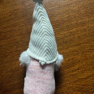 This weighted winter gnome is so fun! Sits upright on its own. Weighted like a bean bag. In great condition with wear as shown - slight stain on bottom, not visible when sitting upright.