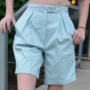 Vintage light blue super high waisted bermuda mom shorts by Boston Traders. They're super long unrolled (see last photo), but rolled they're super cute and are perfect for summer! These shorts are made to fit perfectly around the waist and get looser around the butt/leg area. Would best fit a 25/26 in waist.