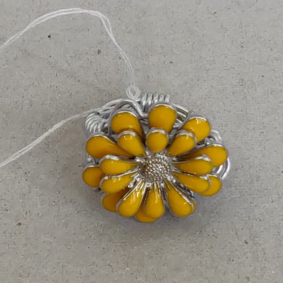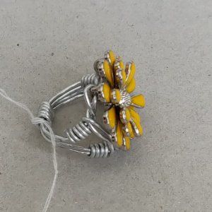 THIS BEAUTIFUL YELLOW FLOWER IS WRAPPED IN ALUMINUM WIRE. IT WOULD LOOK GREAT WITH ANY OUTFIT. IT'S A SIZE 6.