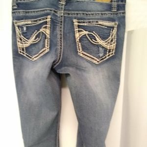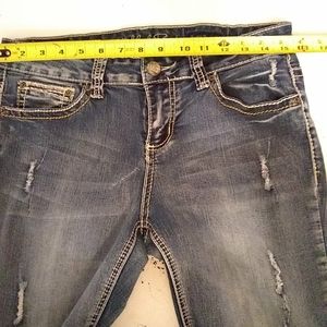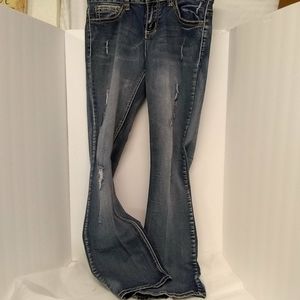 WISHFUL Park Pants Denim Blue Jeans "BELLA" Bootcut Sz 11 Distress Embroider Rip