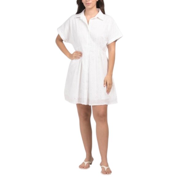 WISHING WAVES Eyelet Lace Pintucked Shirt Mini Dress