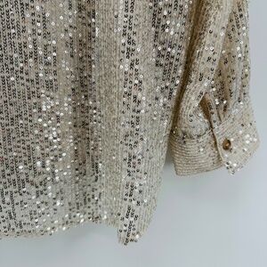 SEQUINS GALORE on this button down shirt. Perfect for a night out on the town, a party, or a dinner out with your man. Beautiful and elegant ... perfect for upcoming holidays!