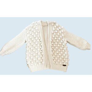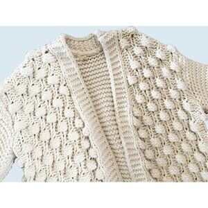 WISHLIST Handmade Pom Pom Cardigan Sweater Cream Off White Size Med
