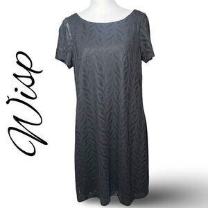 WISP A-line Dress, Short Sleeves, Lace Leaf Pattern Overlay, Black, Size 12