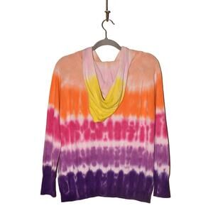 WISPR BY BRODIE CASHMERE $185 Multi-Color Tie-Dye Lightweight Pullover Hoodie XS
