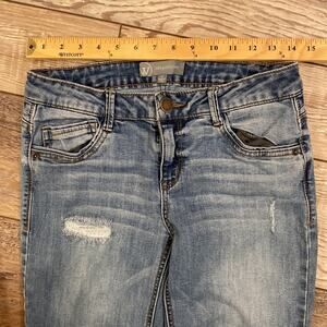 Style: Skinny, cool raw hem denim jeans, ankle hem is higher in the front and lower in the back. Distressed. SUPER CUTE!