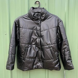 WIT & WISDOM Faux Leather Puffer Jacket Size L
