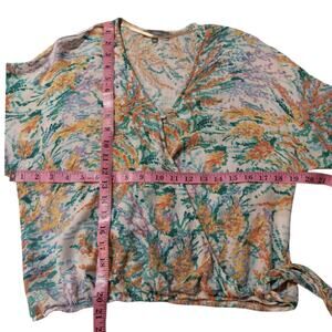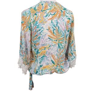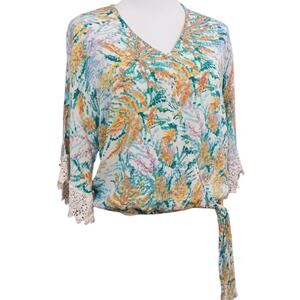 WIT & WISDOM Gauzy Top Wrap Blouse S Floral Crochet Lace Cottage Beach Hip Tie