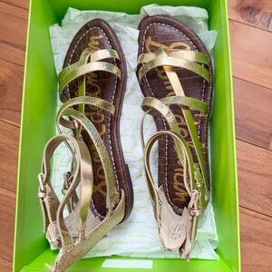 WITH BOX Women Sam Edelman Gibbs Gladiator Gold Metallic Sandals