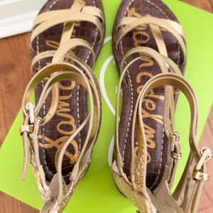 WITH BOX Women Sam Edelman Gibbs Gladiator Gold Metallic Sandals Size 7M