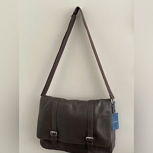 WITH TAGS Cole Haan Leather Buckle Messenger Bag Brown