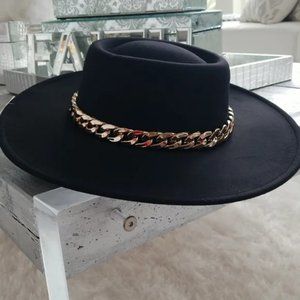 WIde BRIM FASHION HAT W/ CHAIN ACCENT