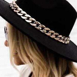 wide BRIM FASHION HAT W/ CHAIN ACCENT