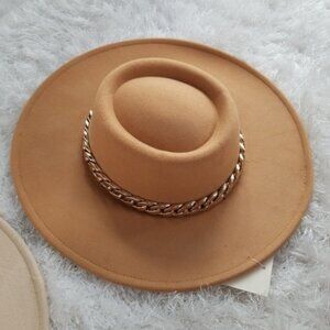 WIde BRIM FASHION HAT W/ CHAIN ACCENT