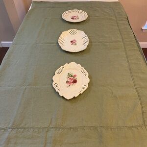 WIlliams Sonoma 100% Linen Tablecloth 65"x 84" Olive Green Hem-stitch Insert