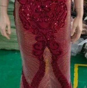 WIne Red, Floral, Sleeveless, Round Back, V Neck, Sequined Mermaid Gown