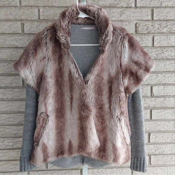 WInk Faux Fur Mixed Media Sweater Jacket Gray Tan XS GUC