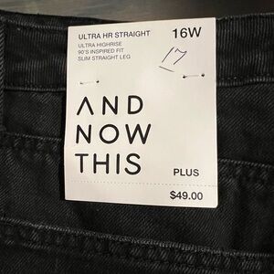 WJ2. NWT AND NOW THIS Women's Ultra High Rise Straight Jeans Neal(blk) 16W