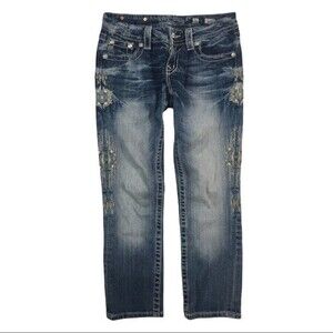 Women’s Miss Me Designer Embellished Cropped Denim Rhinestone Jeans 26